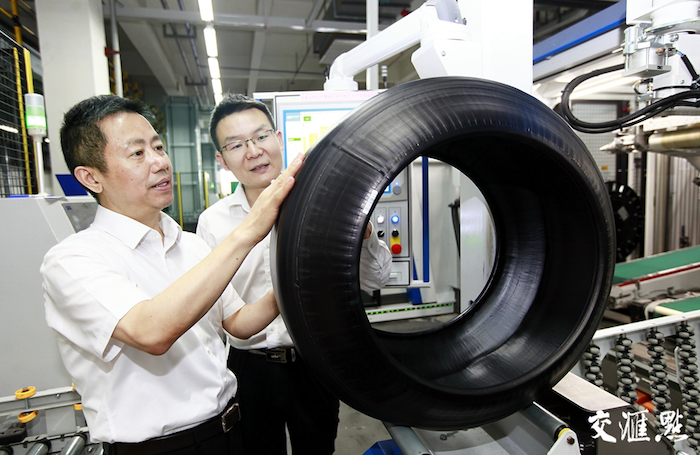 周海江在通用輪胎智能車間了解生產(chǎn)情況。