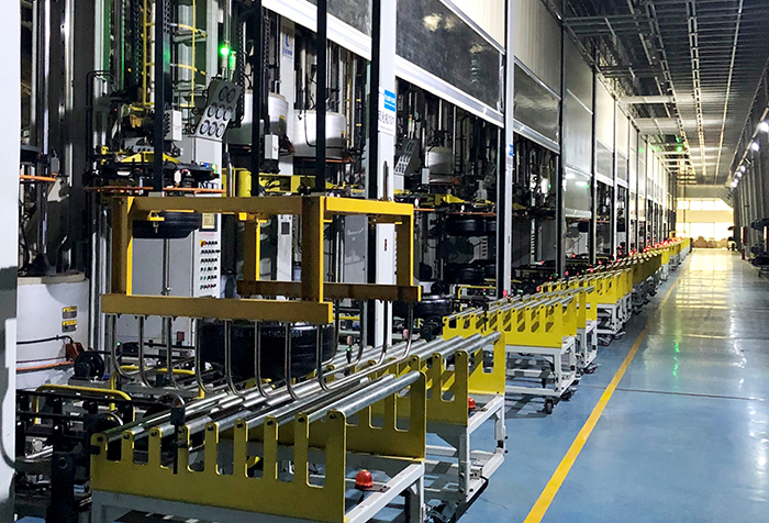 在這個“黑燈車間”——通用股份乘用胎工廠硫化車間生產線上,生產主力不再是工人,取而代之的是機械手臂、EMS小車、堆垛機、全自動硫化機等等,它們在無照明的條件下,為200多個規格型號的6000多條胎胚同時進行自動硫化作業,實現24小時不間斷生產。2019年,該車間還被評為無錫市智能車間。