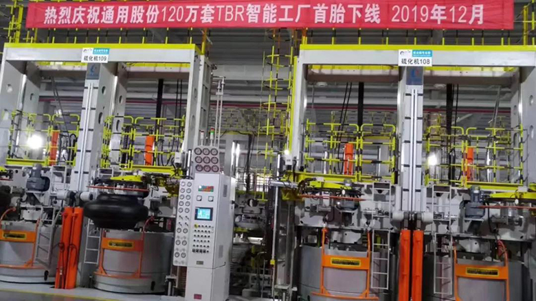 12月27日上午,通用股份120萬套TBR智能工廠首條全鋼子午線輪胎正式下線。下線首胎為通運 12.00R20—XR856。通用股份董事長顧萃,常務副總經理程金元、生產板塊總經理虞秀鳳等領導出席了本次儀式。