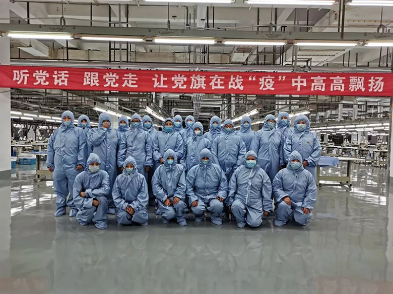 做大了的紅豆,不忘擔當和使命。在這次抗疫中,紅豆集團黨委書記、董事局主席周海江第一時間捐款1000萬元個人特殊黨費,是全國第一個捐款一千萬元特殊黨費的民營企業家。當時,戰疫前線隔離服、防護衣緊缺,了解到這一情況,周海江連夜成立“黨員突擊隊”,克服人員、原料、設備短缺等重重困難,夜日繼夜帶領大家改造生產線,轉產抗疫物資。為了最快速度購買到設備,突擊隊員奔赴深圳,吃住在車上;當時正值春節員工放假,生產線上的員工都回家,沒有人怎么生產?“我干過裁剪,我上!”“我干過縫紉機,我上!”黨員干部紛紛請戰,24小時不停工,連日連夜加班加點生產防護服隔離衣等緊缺的防疫物資。每天早晨七點鐘準時發車,為前線送防疫物資。在2月份,疫情最緊張的時候,紅豆送到武漢前線65萬件隔離衣。