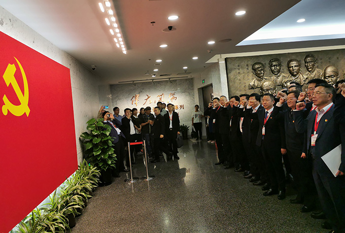 作為此次研討學習的一項重要內容,開班式后,全體學員集體瞻仰中共一大會址,回顧黨的歷史,汲取奮進力量。周海江作為領誓人,帶領大家重溫了入黨誓詞。一大會址是中國共產黨人的精神家園,紀念館內陳列的革命文物、圖文資料及群像浮雕等一一講述著中國共產黨誕生的故事。學員們一路參觀、一路聆聽,追尋中國共產黨的鏗鏘足跡,感悟共產黨人的初心使命和不朽的革命精神,深刻領悟習近平總書記的殷切教誨“走得再遠都不能忘記來時的路”,銘記黨的奮斗歷程時刻不忘初心,擔當黨的崇高使命矢志永遠奮斗。