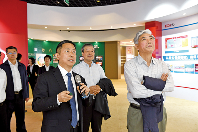 在紅豆黨建館,紅豆集團(tuán)黨委書記、董事局主席兼CEO周海江介紹了紅豆創(chuàng)立的現(xiàn)代企業(yè)制度+企業(yè)黨建+社會(huì)責(zé)任“三位一體”的中國特色現(xiàn)代企業(yè)制度、主題教育開展、企業(yè)發(fā)展等情況。周海江說,企業(yè)健康發(fā)展、企業(yè)人士健康成長,這是黨和國家對民營企業(yè)的基本要求,也是廣大民營企業(yè)的內(nèi)在要求。紅豆集團(tuán)始終堅(jiān)持黨建引領(lǐng)企業(yè)治理,將黨的政治優(yōu)勢轉(zhuǎn)化為企業(yè)發(fā)展優(yōu)勢,始終堅(jiān)持“聽黨話、跟黨走,講正氣、走正道”,始終堅(jiān)持“以人民為中心”的發(fā)展理念,不忘初心、牢記使命,致富鄉(xiāng)親、造福社會(huì),實(shí)業(yè)報(bào)國、八方共贏。