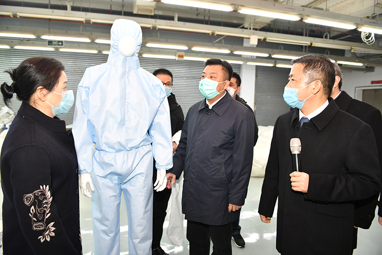 “隔離衣早一天生產,就是對抗疫前線最大的支持。”無錫市市長杜小剛對紅豆在第一時間轉產生產抗擊疫情需要的防護服基礎上,又上馬隔離衣項目給予高度肯定。2月8日,無錫市市長杜小剛帶隊到紅豆防護服車間現場指導并加速推進防護服生產工作。