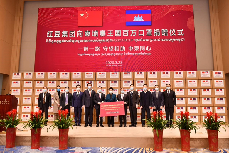 隨著疫情在全球蔓延,我第一時(shí)間安排人員向韓國、日本、加拿大、波蘭等海外客戶郵寄口罩,在市委組織部的牽頭下,紅豆還給美、日、韓海外學(xué)子捐贈(zèng)防護(hù)口罩。我特別關(guān)注柬埔寨的疫情,因?yàn)槟抢镉形覀兇蛟斓奈鞴烁劢?jīng)濟(jì)特區(qū)。得知他們非常缺口罩的時(shí)候,我立馬協(xié)調(diào)生產(chǎn),加班加點(diǎn)趕制,向柬埔寨紅十字會(huì)捐贈(zèng)了一百萬只口罩。柬埔寨紅十字會(huì)主席、洪森首相夫人文拉尼親王特別來信感謝,稱贊“守望相助,中柬同心”。