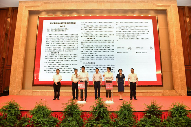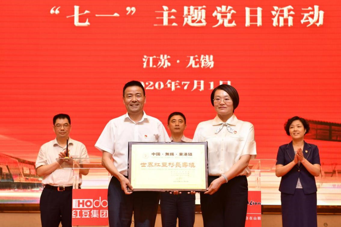 村企聯(lián)姻一家親,攜手共進助振興。 7月1日下午,紅豆集團、山聯(lián)村“黨建引領共走振興路”“七一”主題黨日活動在紅豆杉莊舉行?;顒由希t豆集團與山聯(lián)村深化結對共建正式簽約;為推動山聯(lián)村休閑、度假、康養(yǎng)產業(yè)發(fā)展,帶動百姓致富,紅豆集團還將“世界紅豆杉長壽鎮(zhèn)”品牌使用權授予山聯(lián)村。