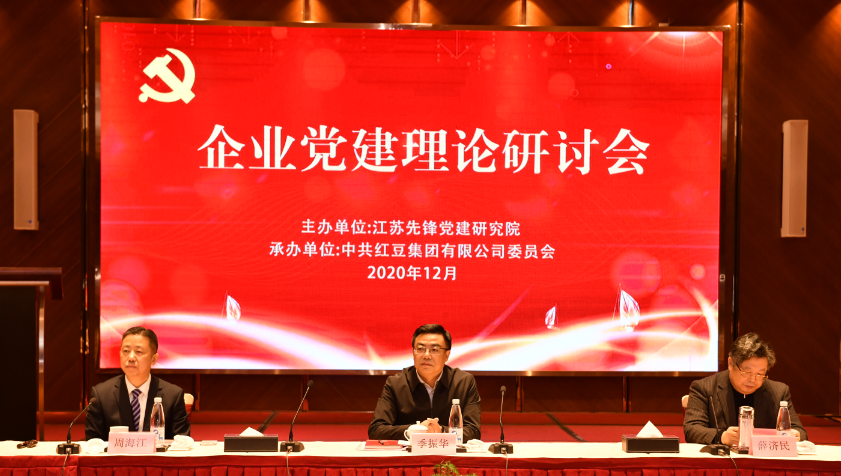 ? ? ? 為深入貫徹中共中央提出的構(gòu)建雙循環(huán)新發(fā)展格局和深化國有企業(yè)改革的指導(dǎo)方針,通過研究探討黨建工作經(jīng)驗以及不同所有制形態(tài)企業(yè)黨建工作的聯(lián)動互促機(jī)制,進(jìn)而將黨建的政治優(yōu)勢轉(zhuǎn)化為發(fā)展優(yōu)勢,共促中國經(jīng)濟(jì)發(fā)展,12月30日,由江蘇先鋒黨建研究院組織的“企業(yè)黨建理論研討會”在省黨支部書記學(xué)院民企分院(紅豆集團(tuán))召開。江蘇省委“兩新”工委副書記季振華出席研討會并致辭,江蘇先鋒黨建研究院理事長、江蘇省律師協(xié)會會長、黨委副書記薛濟(jì)民出席,江蘇先鋒黨建研究院副理事長、紅豆集團(tuán)黨委書記周海江作會議開幕致辭并作主題發(fā)言,江蘇先鋒黨建研究院院長倪春主持會議開幕式。